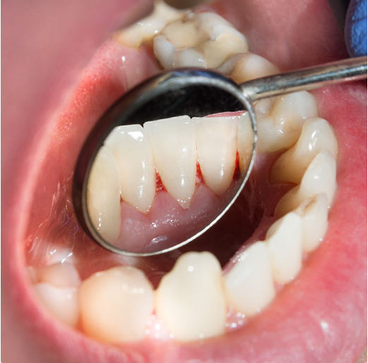 - Pérdida de hueso y encía que provocan que las raíces de los dientes se hagan visibles.