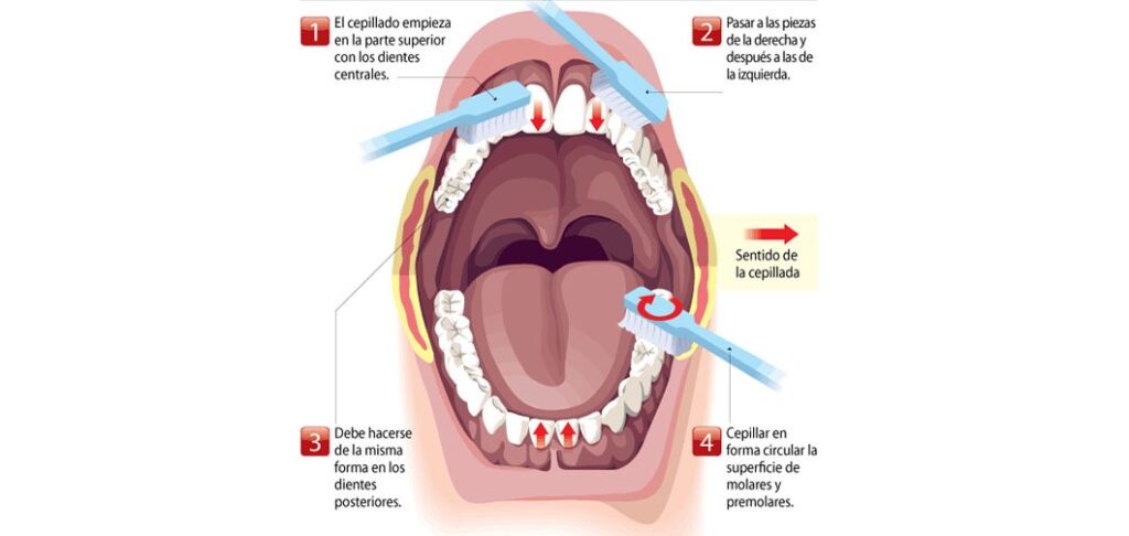 El cepillado de dientes tiene por objetivo, remover la placa bacteriana, y las partículas de alimento de las superficies más profundas de los dientes. Consulte con su odontólogo para que le recomiende un buen cepillo de dientes. Como norma general, un cepillo de cerdas suaves y con terminación curva es